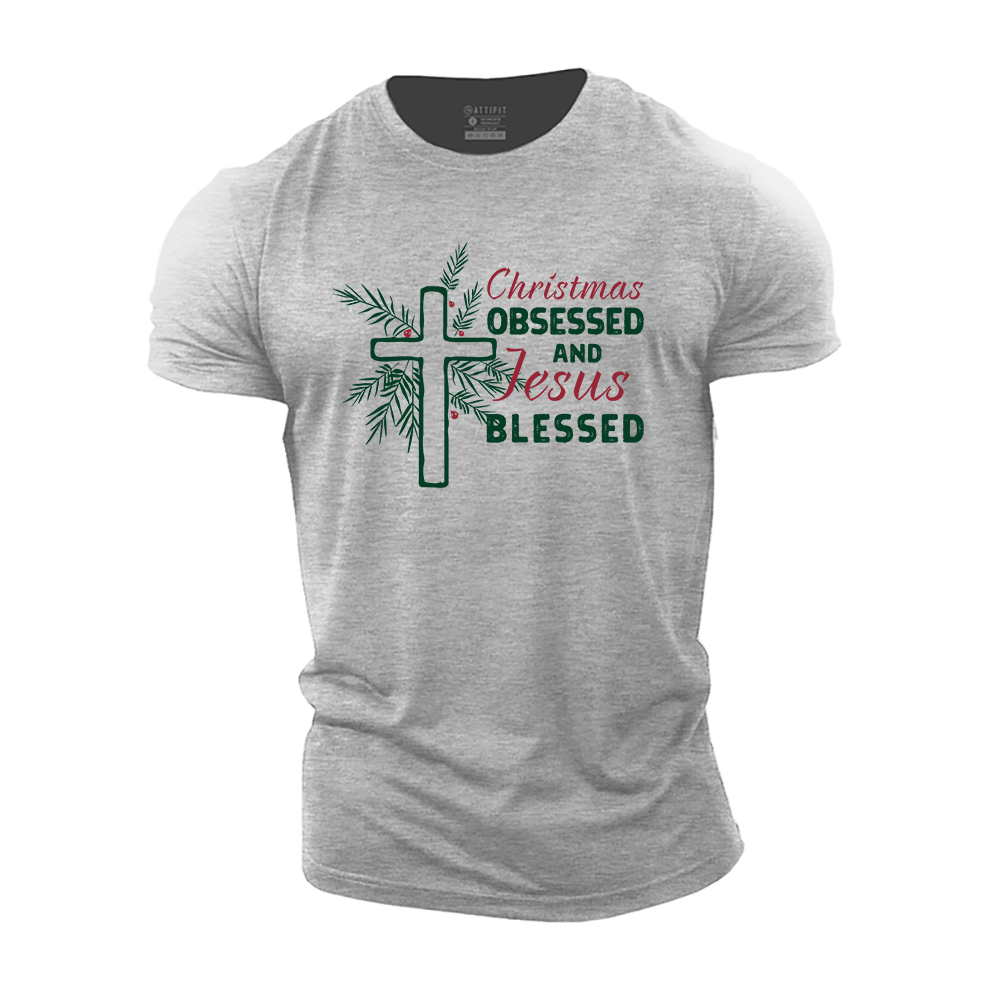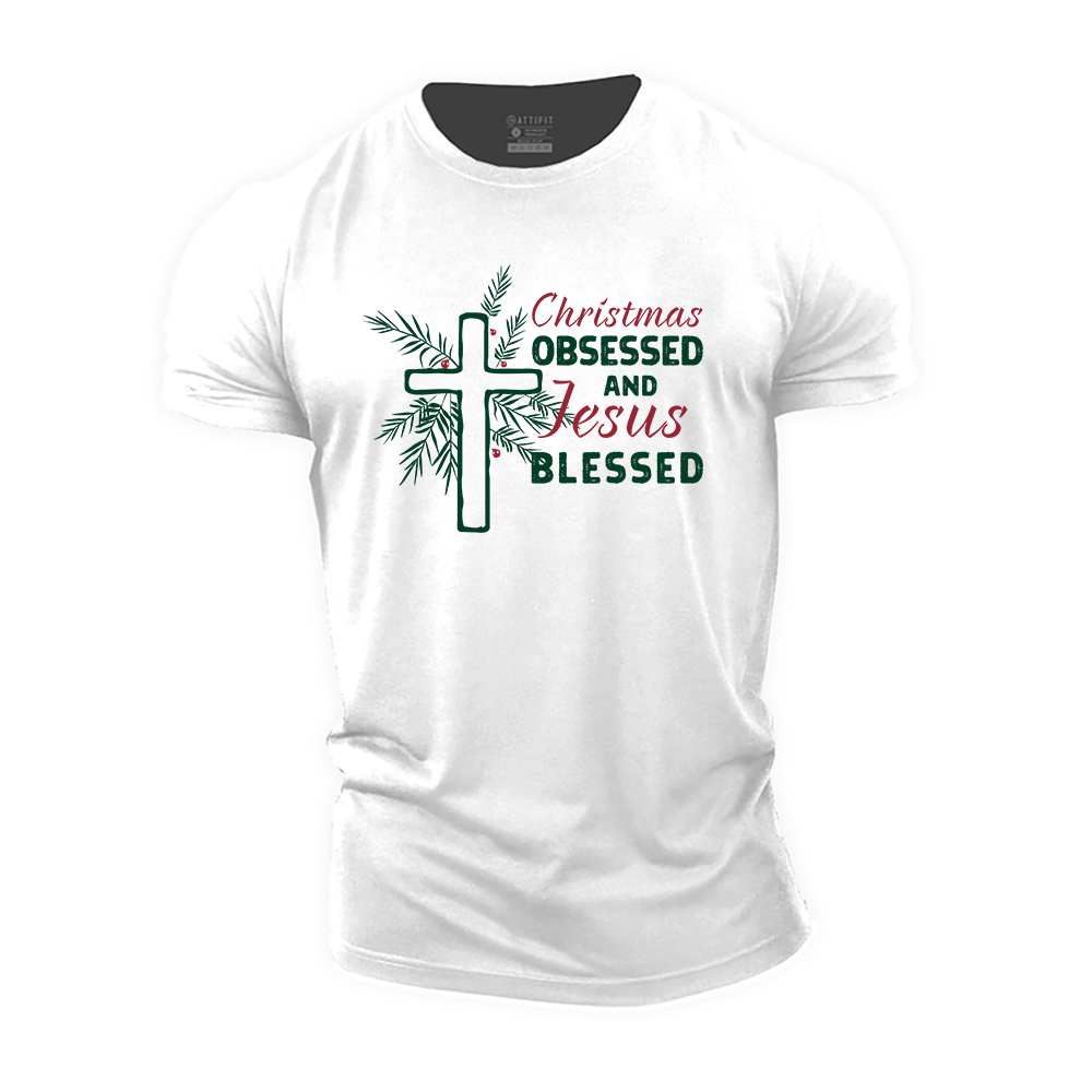 Christmas Obsessed and Jesus Blessed Cotton T-Shirt