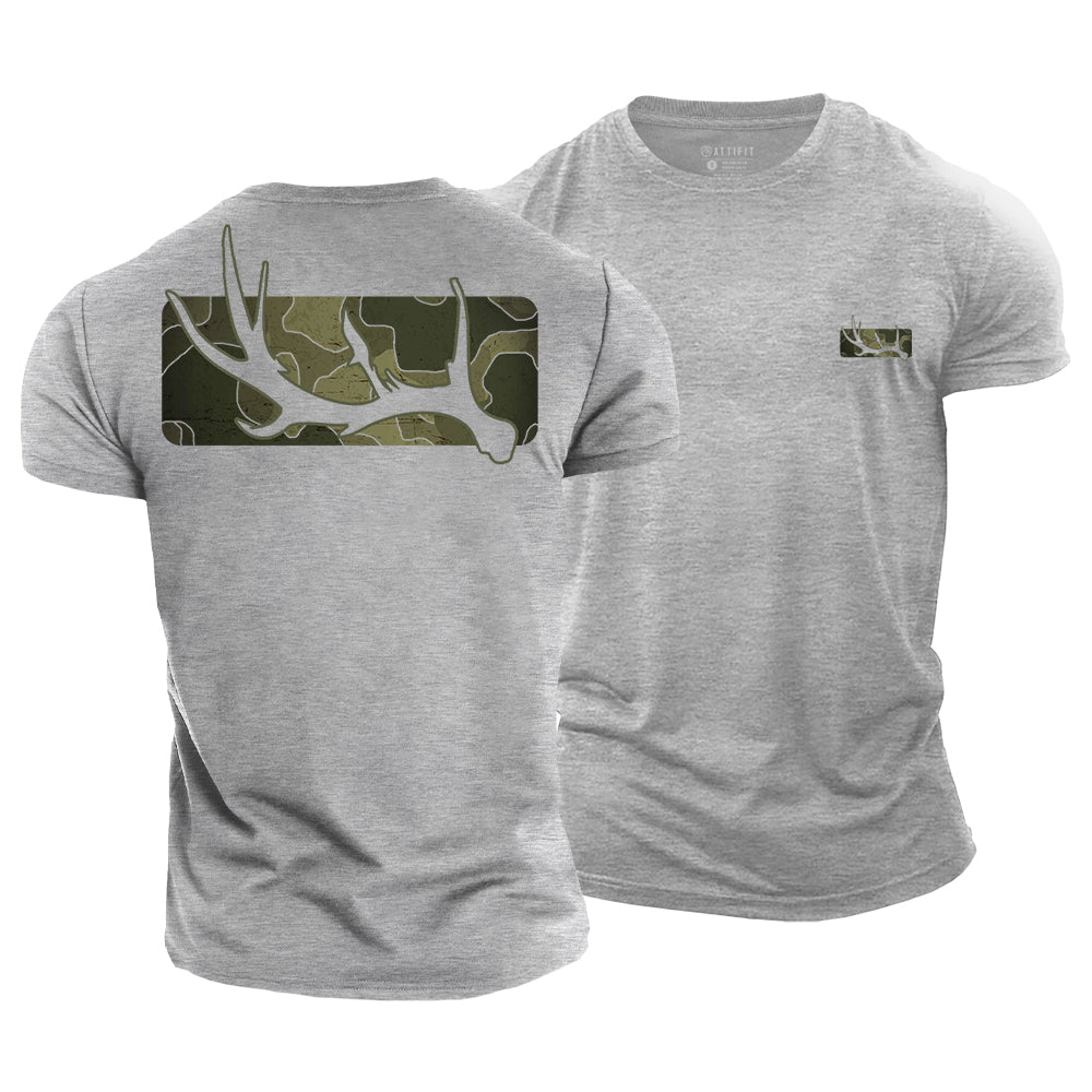 Camo Antler Bar Cotton T-Shirt