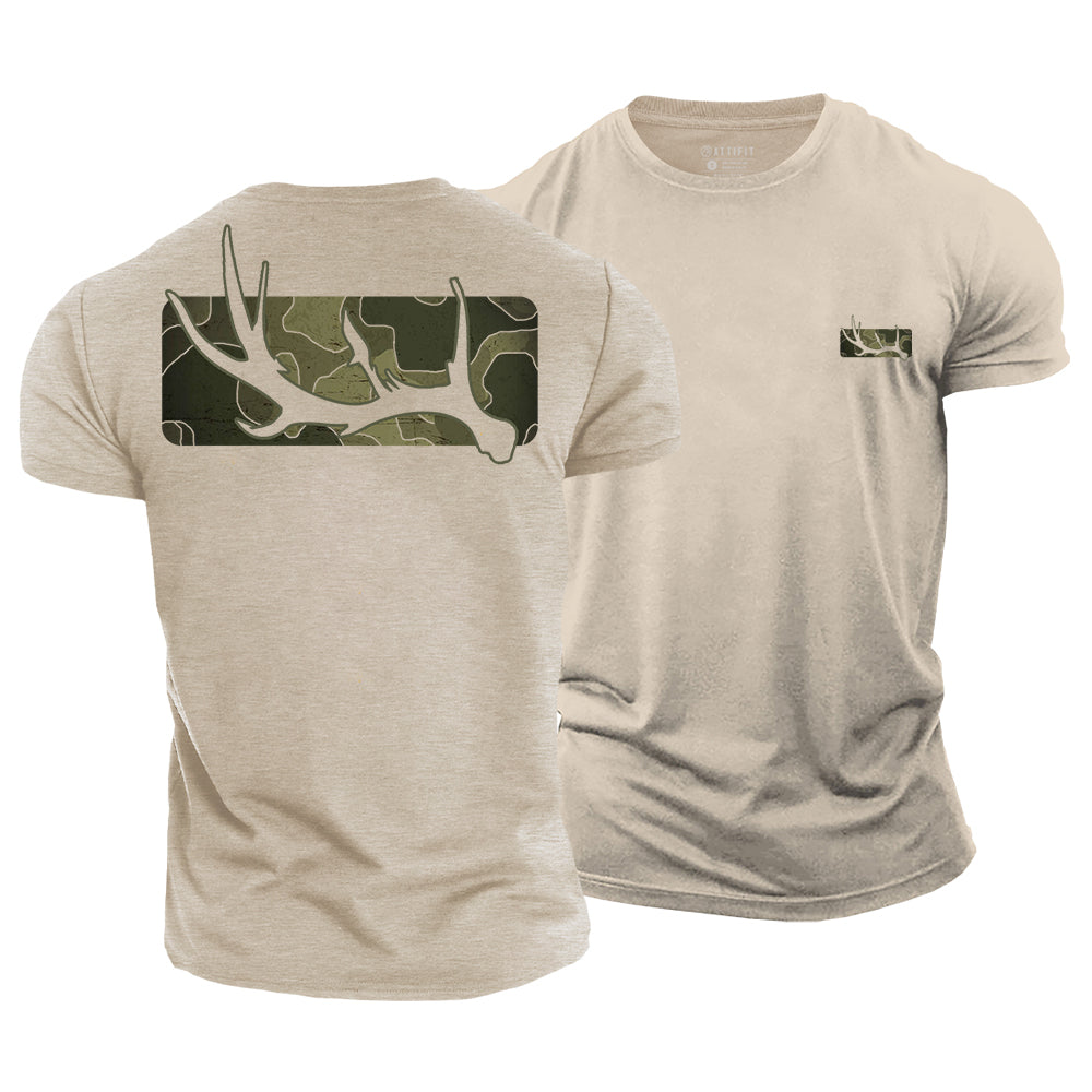 Camo Antler Bar Cotton T-Shirt
